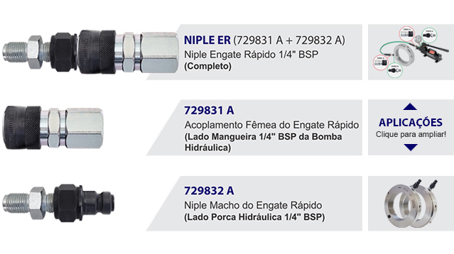 ENGATE RAPIDO - CONEXÃO AMBAS EXTREMIDADES 1/4BSP - PARA BOMBA HIDRAULICA BH 100 / BH 160