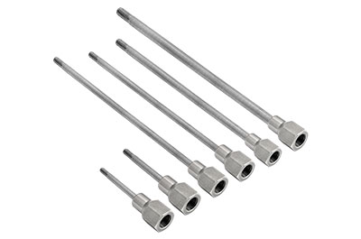 The hydraulic adapter sleeves are provided with slits for oil injection and make easy the disassembly of the set, mainly after long period of use. The sleeves have fine walls and, when assembled in a distance from the shaft face, they need to have a proper connection, so that the connection of the pump can be made. To meet this need, the BGL has extension tubes adequate for each possibility of oil inlet into the sleeves, being (M4, M6, M8, G1/8, G1/4) and at the other end ¼ BSP for connection to the outlet hose of the pump.