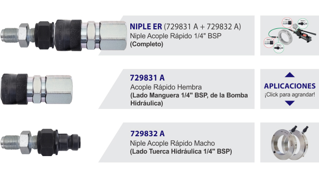 ACOPLAMIENTO RÁPIDO – CONEXIÓN AMBOS EXTREMOS 1/4 BSP – PARA BOMBA HIDRÁULICA BH 100/BH 160